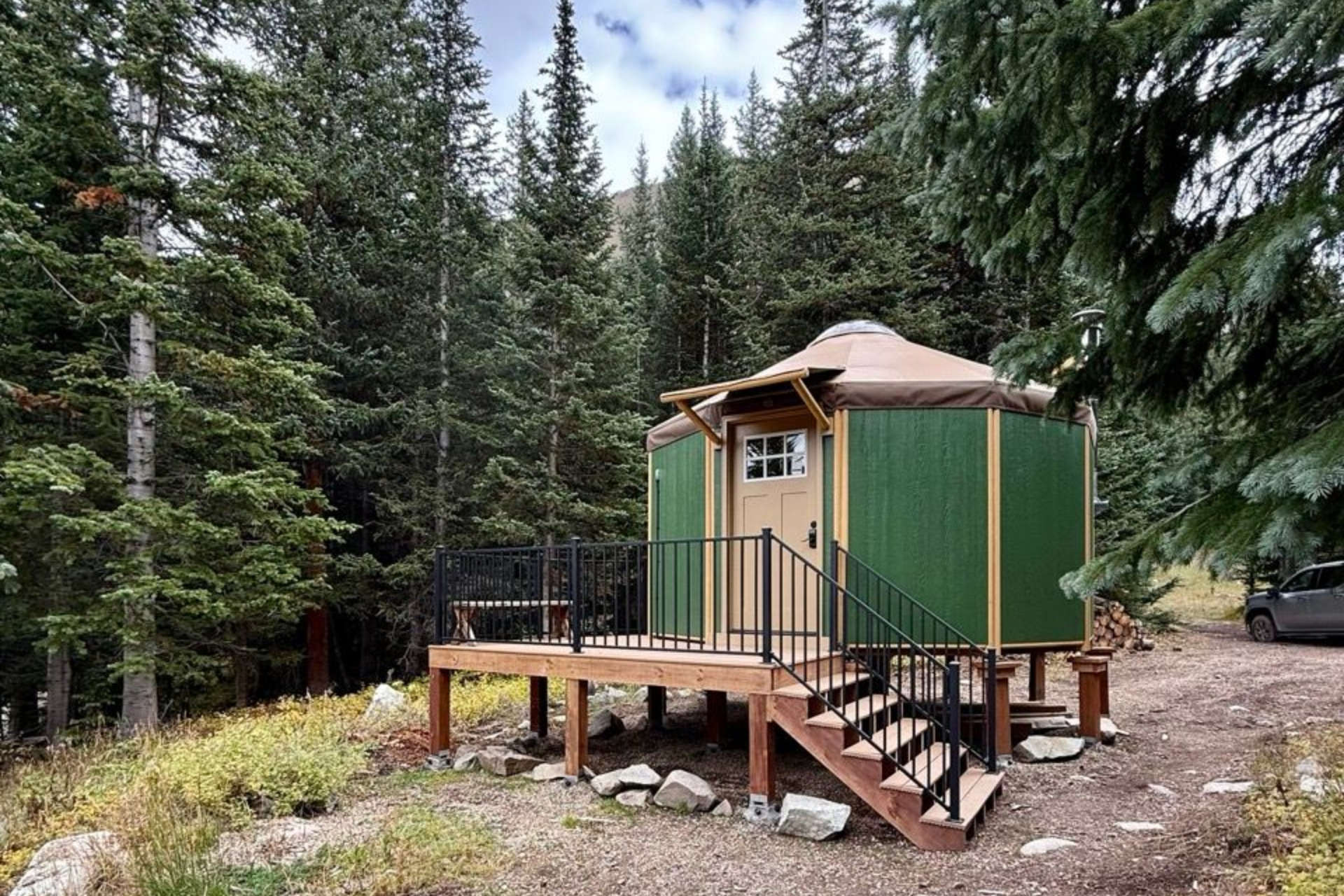 Clark Peak is located halfway to Jewel Lake, nestled in a small clearing with a mountain stream nearby. Perfectly secluded while still being accessible. Featuring a 20-foot yurt with a wraparound deck that comfortably sleeps up to 9 guests. 4WD access in the summer and a 2 mile trek in the Winter.