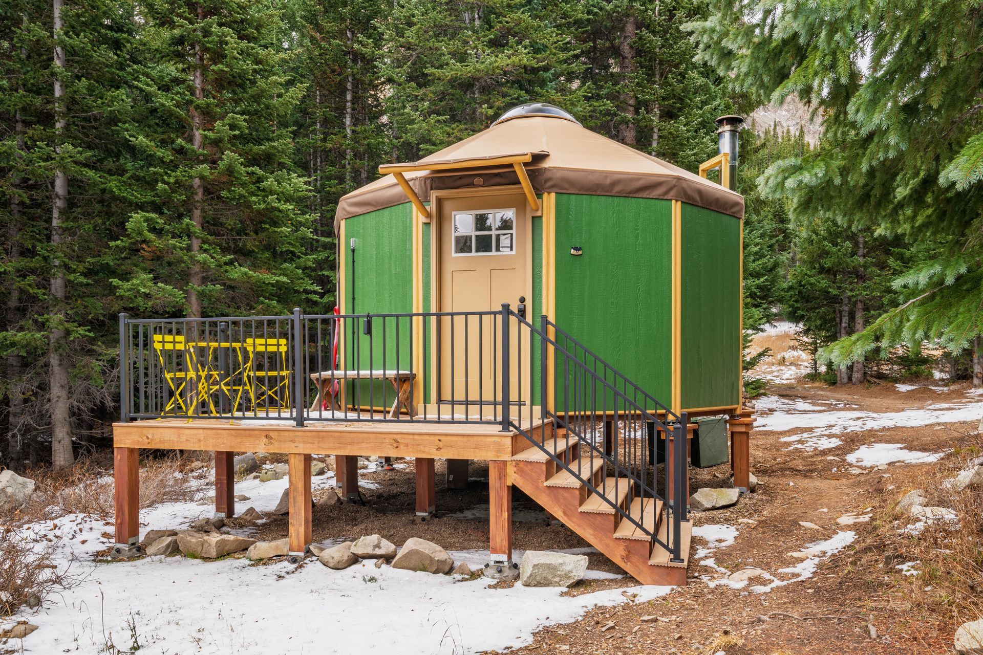is one of our most secluded yurts. Incredible views of the Never Summer Mountain Range. This 16-foot yurt with wraparound deck sleeps up to 6 guests. Summer walk in is 1.1 miles and for skiers it can be anywhere from 1.1 miles to 5 miles, depending on the trailhead used.
